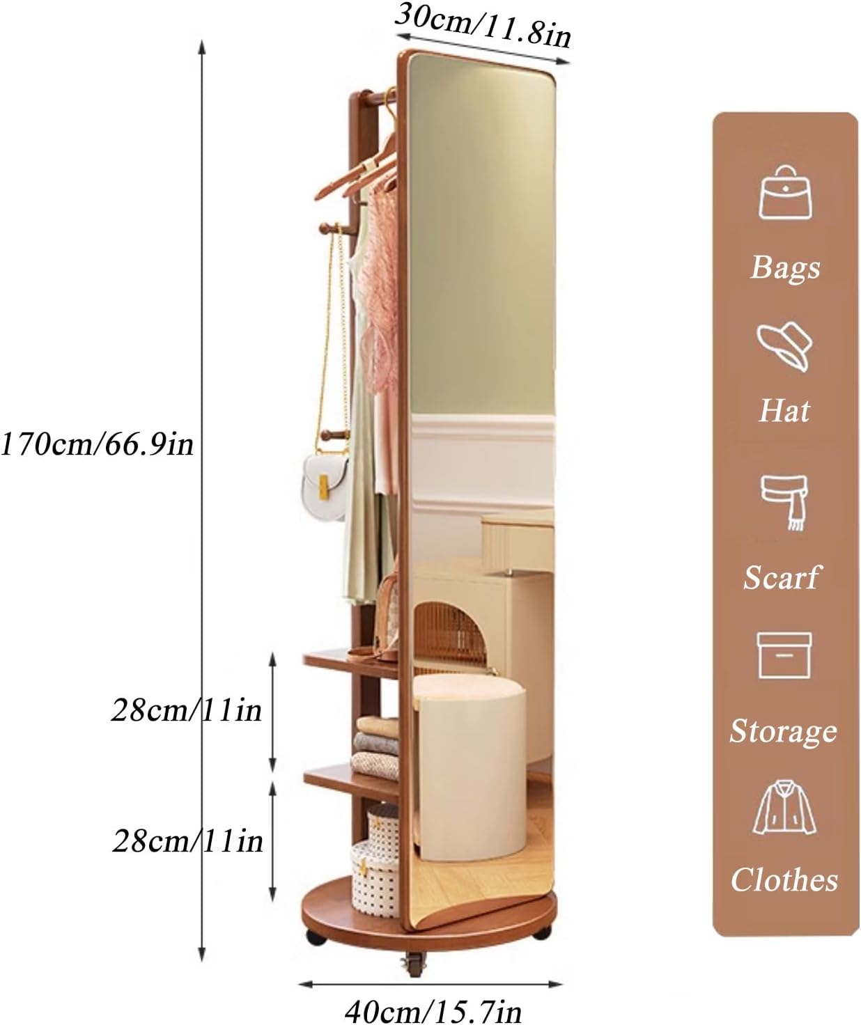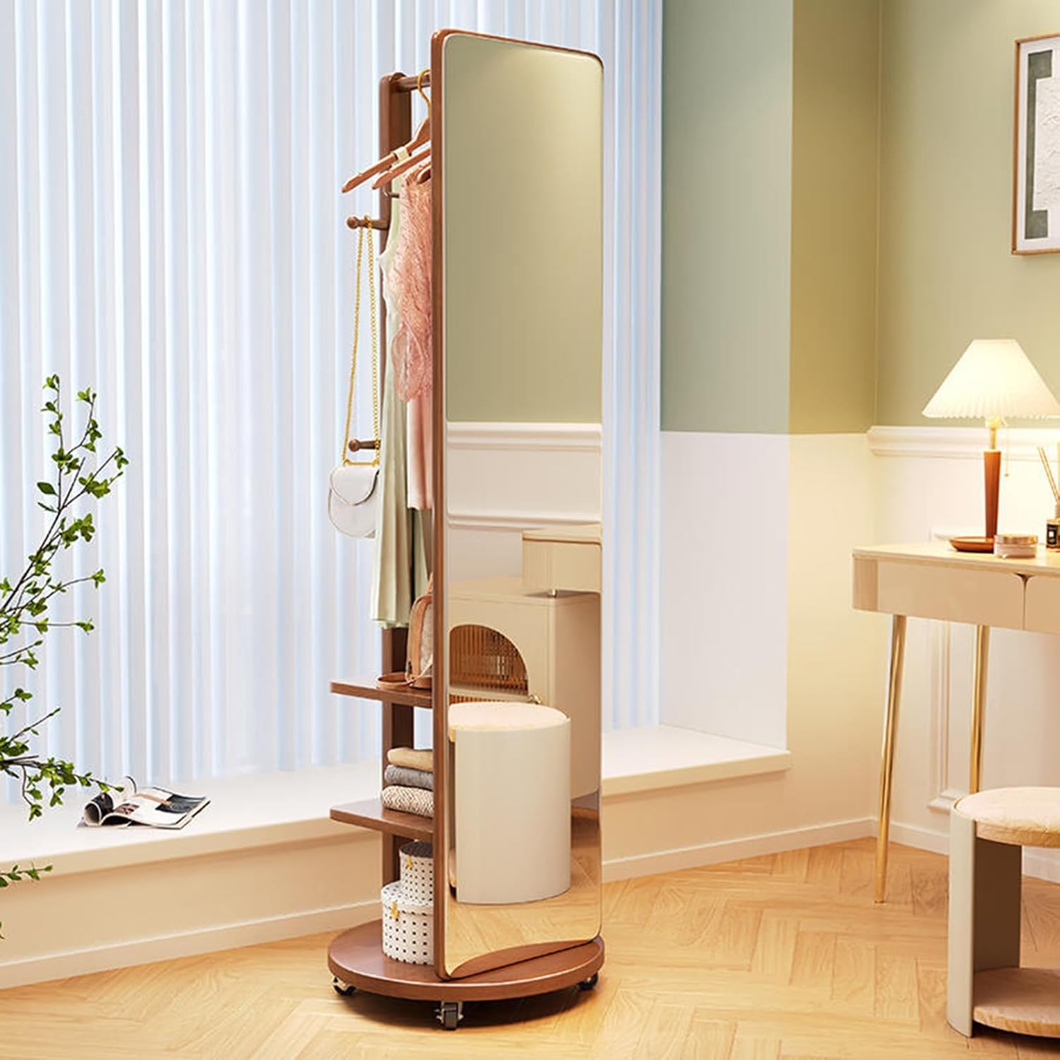 A-Specchio Intero in Legno Massello con Ruote e Ripiani
