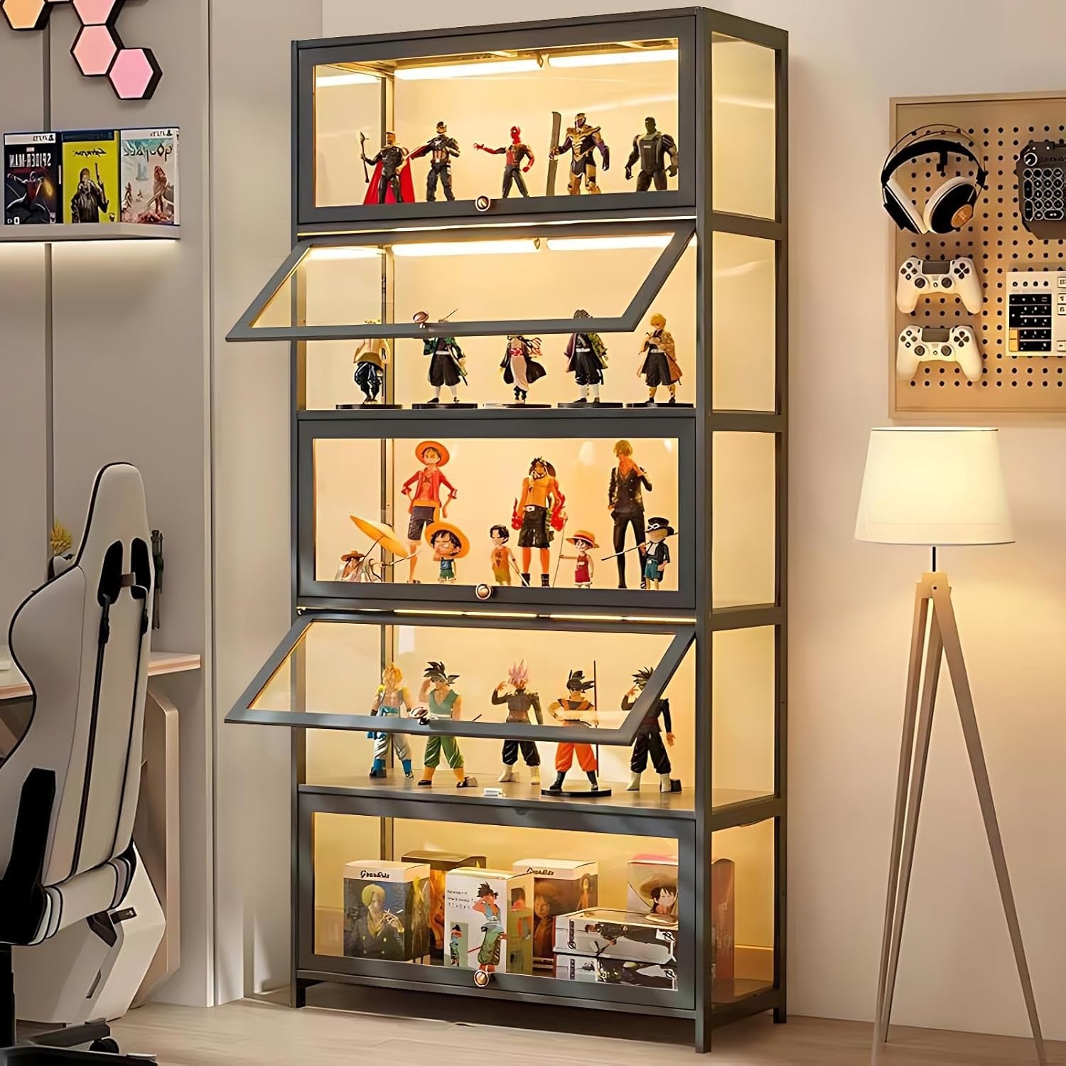 A-Vetrina con 5 ripiani 📚✨ e porta in vetro acrilico