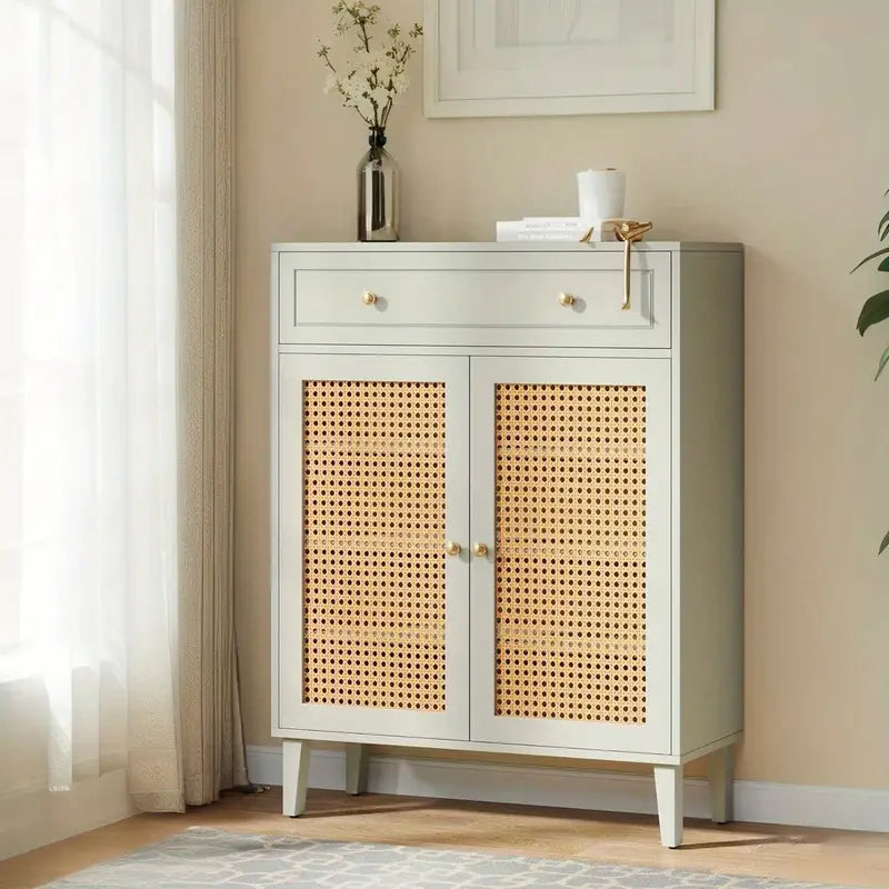 【Affidabilità e praticità】: Realizzato con legno di prima qualità, questo mobile garantisce una lunga durata. L'integrazione artistica dei pannelli in rattan ne amplifica il fascino estetico, offrendo allo stesso tempo un'eccellente ventilazione per gli oggetti riposti. Il design robusto, rafforzato da caratteristiche come la configurazione sigillata per la prevenzione di polvere e danni, garantisce la sicurezza e la pulizia dei vostri oggetti.