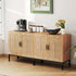Le meuble est doté de portes en rotin magnifiquement travaillées, avec des motifs asymétriques uniques en forme de T, qui ajoutent une touche d'élégance bohème à votre espace de vie. Au-delà de son aspect esthétique, il est conçu pour durer grâce à son MDF robuste, son bois massif et ses pieds en métal pouvant supporter jusqu'à 113 kg, garantissant à la fois solidité et beauté.