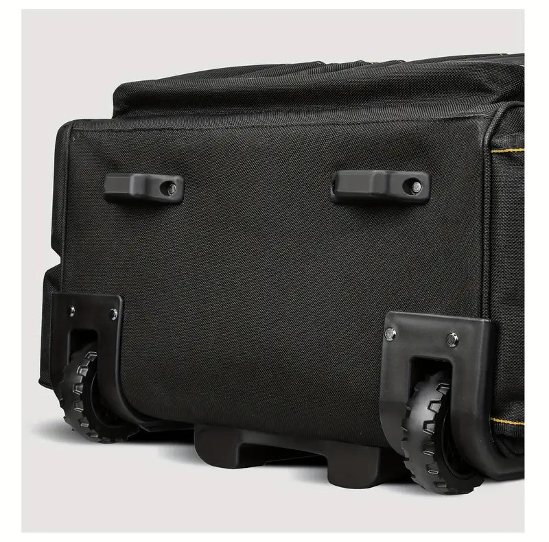 Voorzien van een uitschuifbare rubberen handgreep en 360° zwenkwielen, beweegt deze gereedschapstas moeiteloos over elk oppervlak. Of je nu door smalle ruimtes manoeuvreert of ruw terrein trotseert, de soepel rollende wielen zorgen voor stabiliteit en controle.
